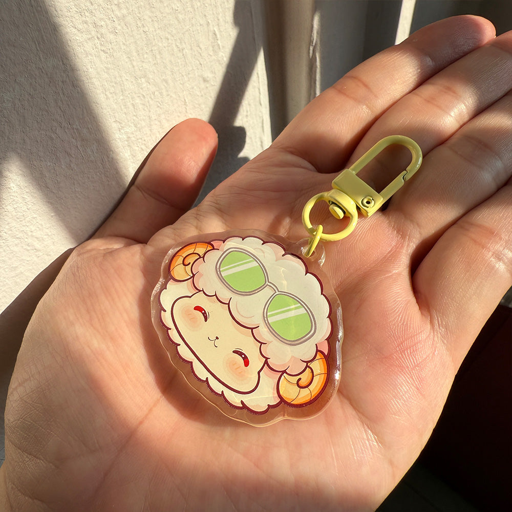 Carry a little bit of cool wherever you go with our adorable Cotton "Stay Cool!" Epoxy Keychain! Featuring the ever-so-chill Cotton from our beloved "Aminal Furm" series, this keychain perfectly captures his signature laid-back style. With his iconic green shades and an infectious smile, Cotton is ready to add a burst of positive vibes to your everyday essentials.